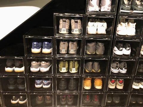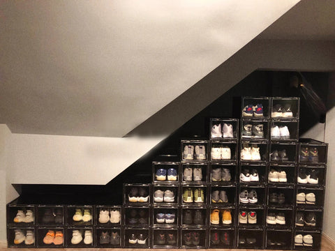 The reasons why I use black to store my shoes are black and decoration style are more compatible and cooler ; my husband is a black lover. I arranged shoe boxes according to the height of the ceiling of my cloakroom room. It looks pretty good ,i really like it.